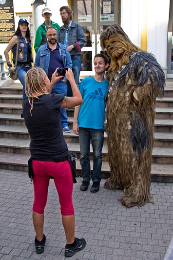 jelmezesek sokak figyelmét odavonzották a mozi előteréhez, és